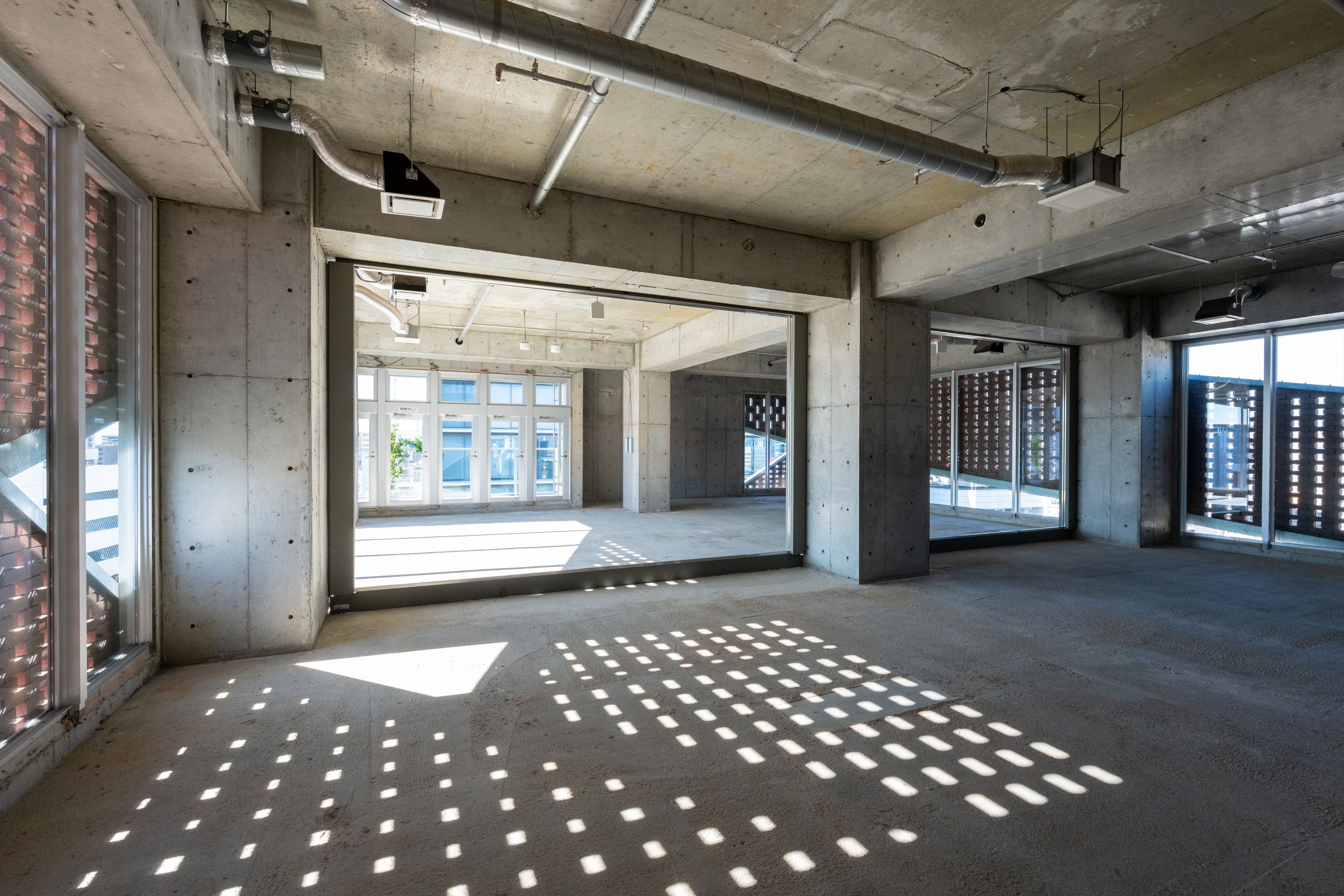 無垢なコンクリートは、街の鼓動を静かに受け止める。