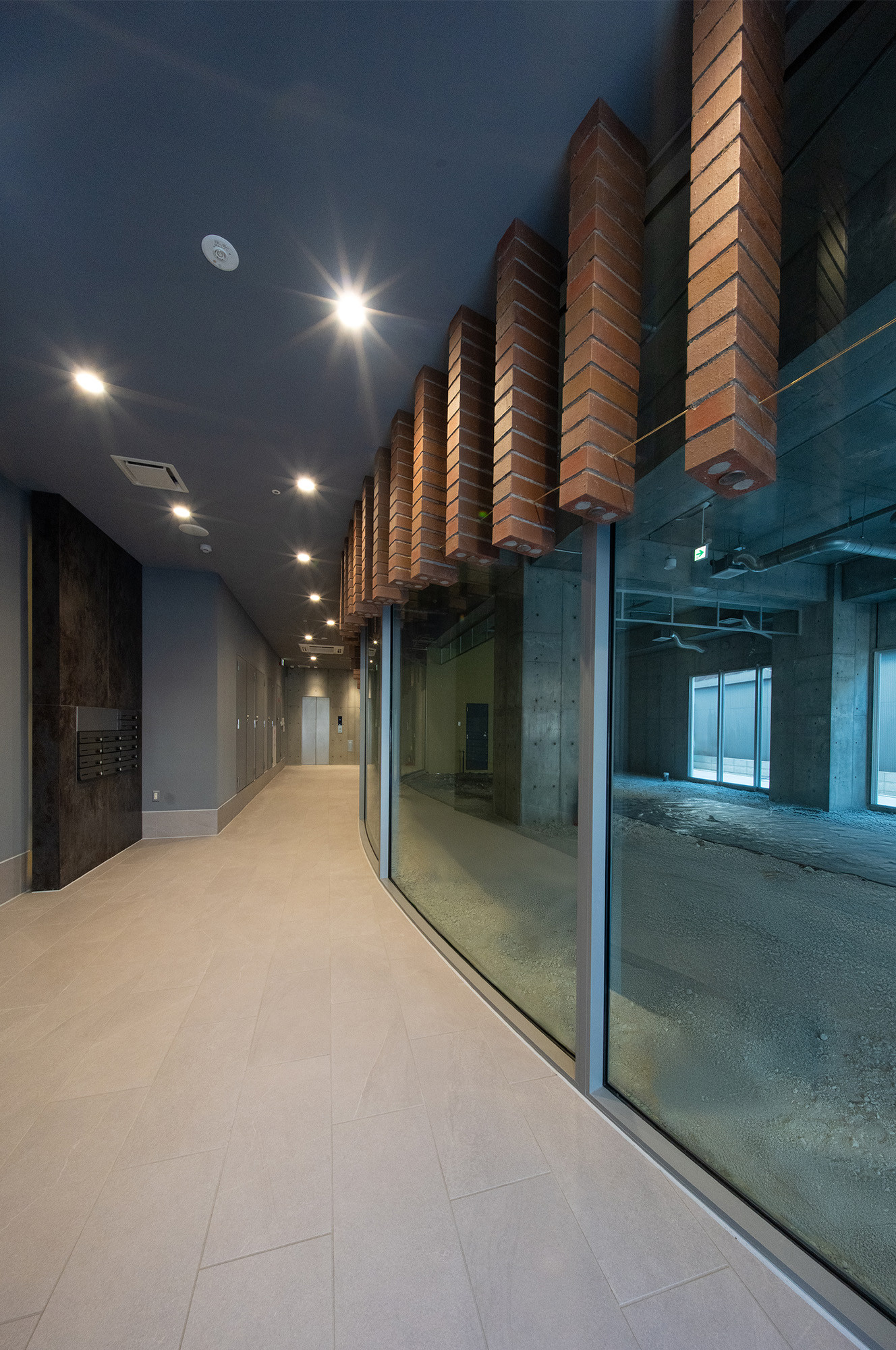 高山氏は、日本の名だたる建築家の作品に参加している煉瓦職人。 コンクリート打ち放しに高山氏の煉瓦をどのように“纏わせる”か、テーマをこの1点に絞った。 徹底的な構造検討、ディテールの構築を重ねることにより誕生したテナントビル「ステイ・リアル大須」。