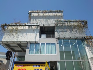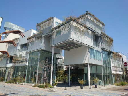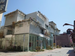 前橋の古い商店街にある宙に浮いたBOXの集合体。