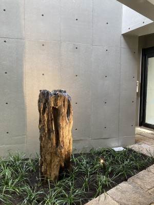 こちらエントランスオブジェの珪化木の写真です。
