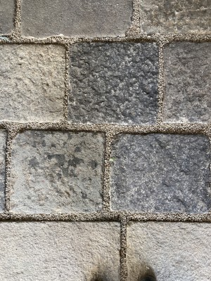 それを取り囲む石敷きは既存の庭園から再利用しているものです。かつて路面電車が主流だった時代に使われていた石敷きとのこと。
