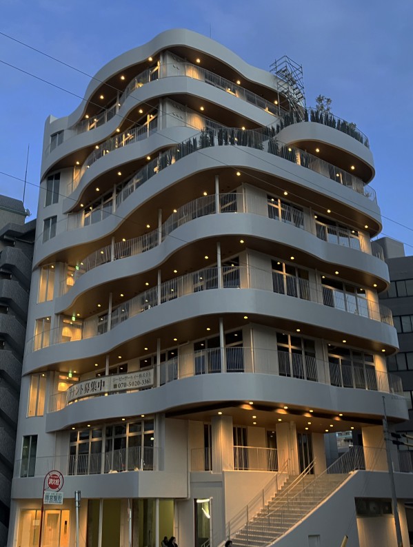 波打つ石の建築。硬い石を、柔らかく流動的に見せるている建物。